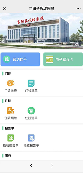 1、手机微信或支付宝关注“当阳长坂坡医院”公众号,绑定就诊人信息,自助挂号。微信、支付宝挂号并支付成功的患者,直接到相应诊区分诊台报到就诊。