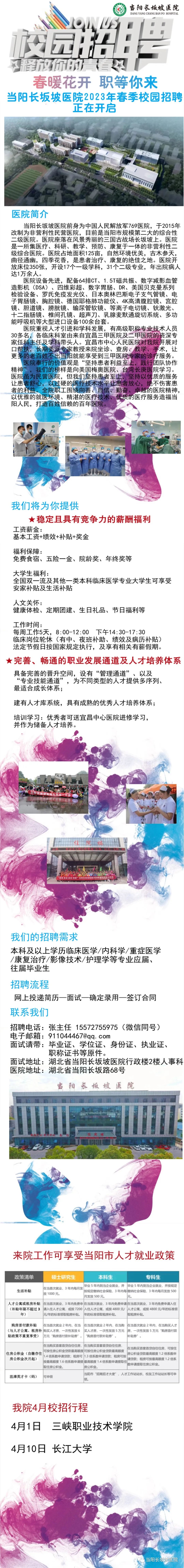 当阳长坂坡医院2023年春季校园招聘正在开启