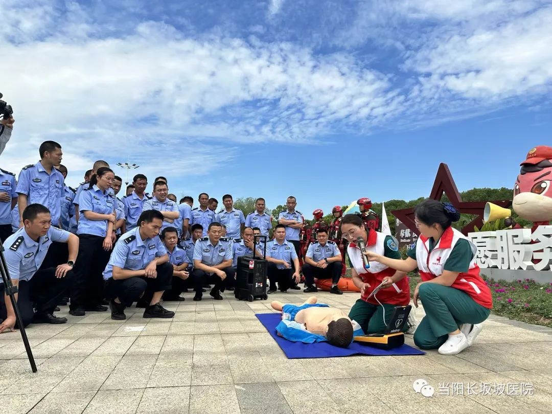 为普及全民健康知识,提升民辅警水上应急救援能力,提高个人防护水平,更好保护好人民群众生命安全,近日,受当阳市公安局的邀请,当阳长坂坡医院“急救之帆”宣讲队在急诊科护士长朱雨苗的带领下,参加了当阳市公安、消防联合演习,现场讲解了除颤仪的使用、心肺复苏等急救知识,并组织部分学员现场体验。本次活动线上同步直播。