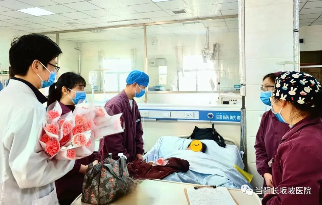 一束鲜花表心意,一声问候寄真情。2023年3月8日,在这特殊的日子里,当阳长坂坡医院血透室医护人员将精心准备的一束束鲜花送到前来接受透析治疗的女患者手中时,承载着“爱与健康”的康乃馨向患者传递了医护人员对她们早日战胜病魔的期盼。