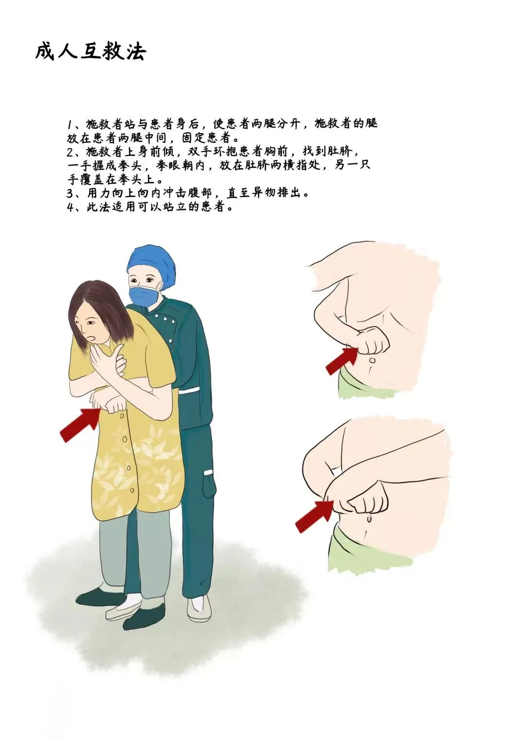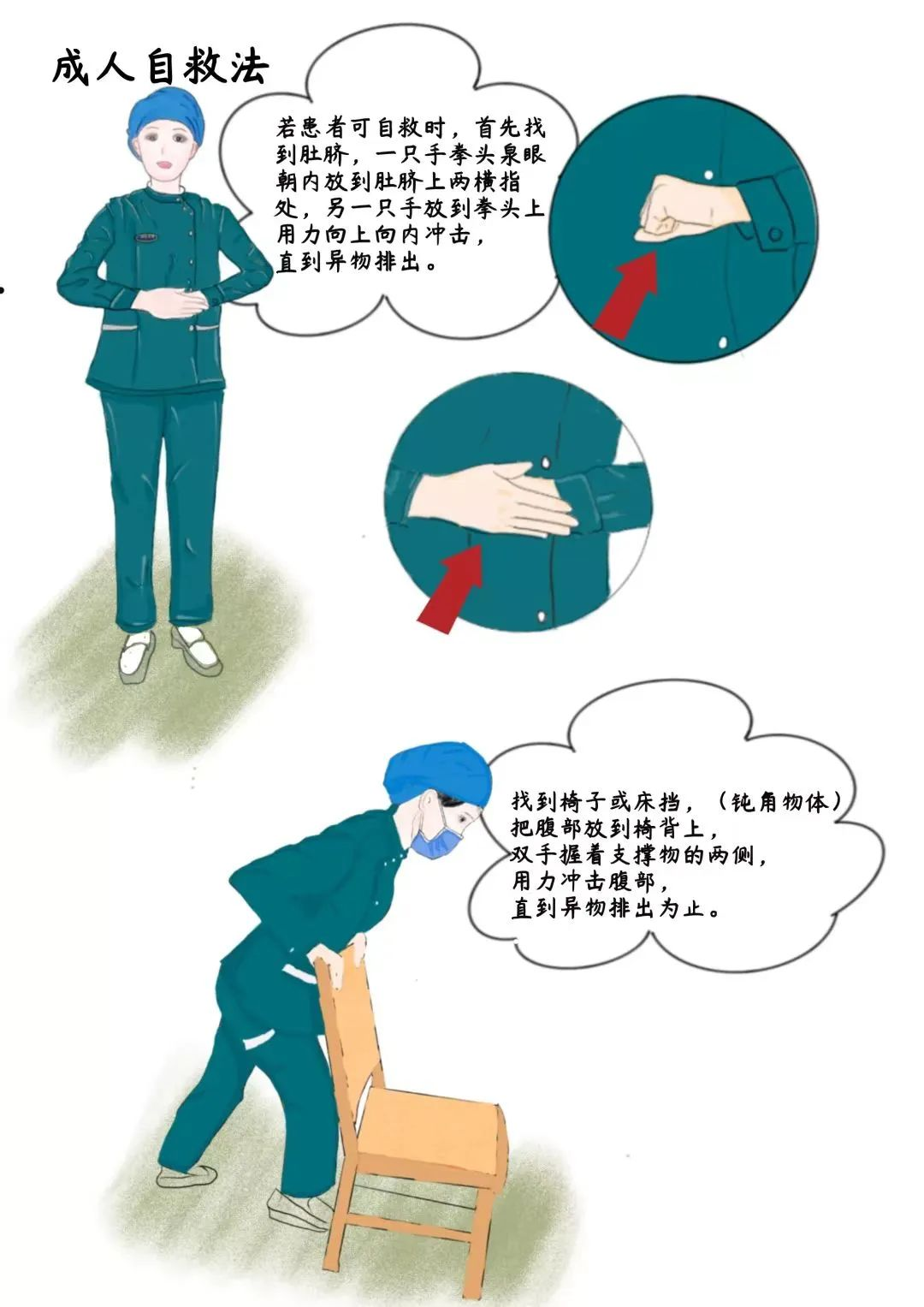 “如果你身边有人被噎住了,拍背、抠嗓子的方式都是错误的,正确的处理方式就是海姆立克急救法 ,学会海姆立克急救法,关键时刻能救命。”急诊科主任邓晗介绍。对于有意识的病人,取坐位或站立,救助者站在病人身后,双臂环抱病人腰部,接着就是“剪刀、石头、布”的操作——取脐上二指处,也就是病人腹部位于剑突下与脐上的腹中线部位,一手握拳抵住此处,再用另一手紧握拳头快速向内向上,使拳头冲击腹部,反复冲击,直到把异物排出,如果病人此时出现意识丧失,呼叫无反应,还应该立即实施心肺复苏术,并拨打急救电话送往就近医院进一步治疗。